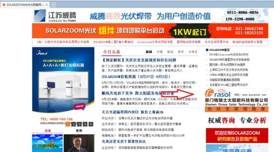 September 2, 2014, Xiamen Grace Solar Technology Co., Ltd. & Industry well-known website Solar Zoom signed a contract for 1 year business cooperation From September 10, 2014 to September 10.2015, Grace Solar brand “Grasol” should be showed on the right of news column on Solar Zoom PV network home page (http://www.solarzoom.com).
