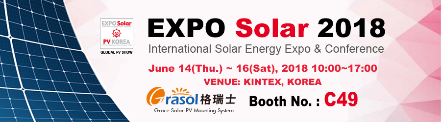 Xiamen Grace Solar Technology Co., Ltd. will participate in the International Solar Energy Exhibition in Seoul, South Korea on June 13, 2018. Exhibits include the classic Grace Solar roof support, aluminum alloy floor support, piling ground support.