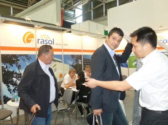 The Germany Inter Solar exhibition and conference, which was starting on June 13, 2012 has ended successfully on June15, 2012. Grace Solar had performed well on this exhibition with its great products. Nice appearance, smart design, low foundation cost, efficient installation and other excellent features have won Grace Solar mounting structures a lot of high praise and leave the visitors with deep impressions at this far-reaching International Solar conference.