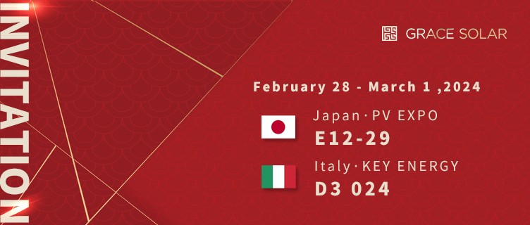 2024-02-22Spring light is the prelude, and all things are moving towards new. Grace Solar has embarked on a brand-new global exhibition journey in the light of spring.From February 28th to March 1st, two international exhibitions - the Italy&Japan PV Exhibitio -