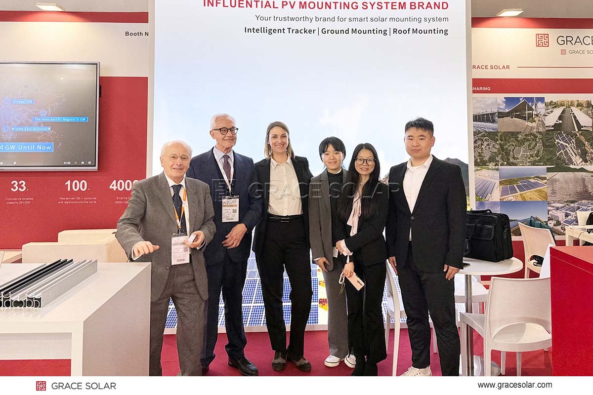 2024-03-04From February 28th to March 1st, the annual Italian Key Energy International Renewable Energy Exhibition opened with great success at the Rimini Expo Center in Italy.Grace Solar presented its tracking mounting system solutions and full-scenario appli -