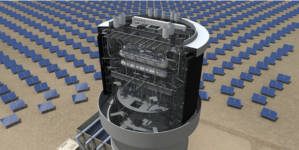 Following a set of 3 d images showed the tower of Alstom solar-thermal solar mounting solutions.