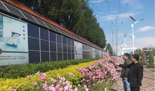 On May 11, baoding xushui people stop Liu Ling road, appreciate juli new energy photovoltaic culture wall.Juli new energy solar mounting systems in June 2014 through the acceptance of formal grid generation, all adopt juli new energy co., LTD., the production of solar photovoltaic modules, with a total installed capacity of 20 mw, an annual output of 20 million degrees, with environmental protection, practical, public welfare, and other functions.